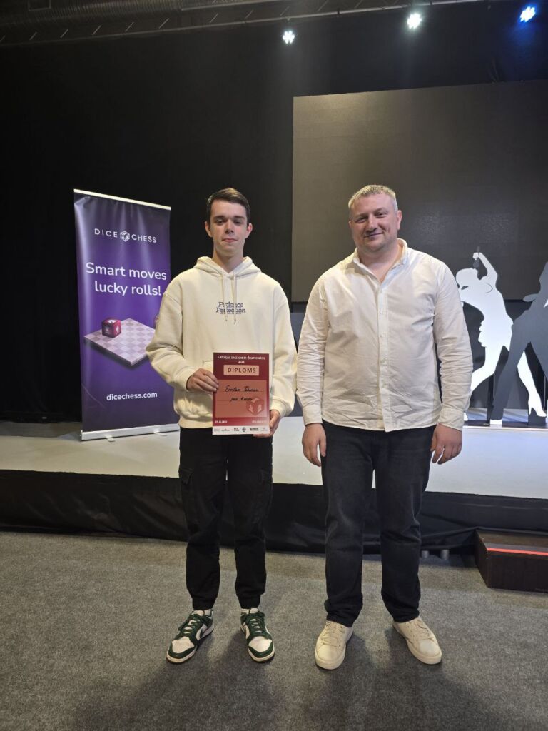 From the very first rounds, Ivans Kolesnikovs took the lead and confidently maintained it, becoming the Latvian Dice Chess Champion 2025 with 13 points out of 16 possible.